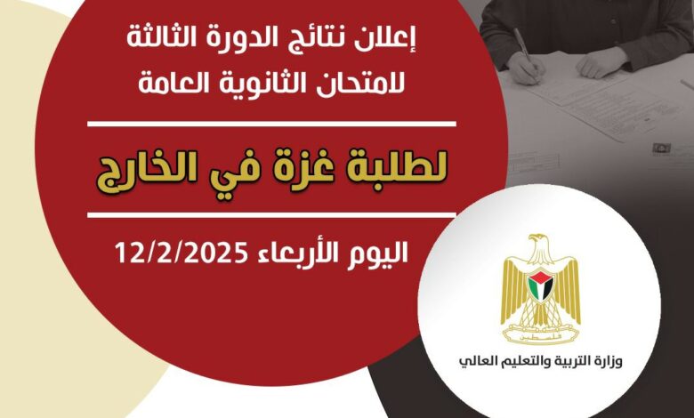 التربية” تعلن نتائج الدورة الثالثة لامتحان الثانوية العامة لطلبة غزة في الخارج