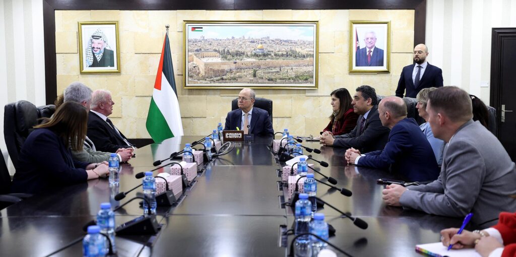 وأطلع رئيس الوزراء الوفد البرلماني على تطورات الأوضاع في الأراضي الفلسطينية، في ظل تصاعد عدوان الاحتلال على أبناء شعبنا خاصة في محافظات شمال الضفة الغربية، والتدمير الممنهج للمنازل والمنشآت والبنية التحتية، وتهجير المواطنين، والقتل والاعتقال، وارتفاع عدد الحواجز ونقاط التفتيش لتصل إلى ما يقارب 900 حاجز ونقطة تعيق حرية حركة الأفراد والبضائع، بالإضافة إلى التوسع الاستعماري والاستيلاء على الأراضي واعتداءات المستعمرين المتكررة.