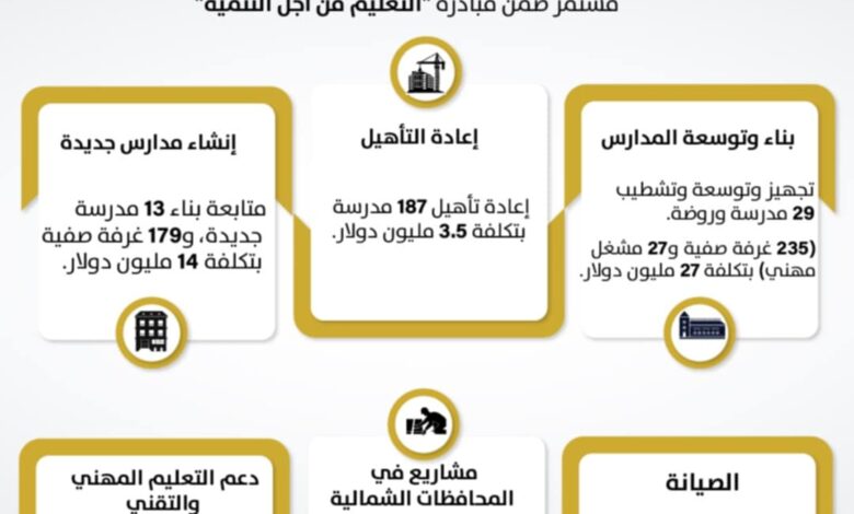 تمكنت الوزارة من إعادة تأهيل 187 مدرسة في مختلف المحافظات، بكلفة بلغت 3.5 مليون دولار، لتحسين ظروف التعليم وضمان بيئة أكثر أمانًا للطلبة والمعلمين.