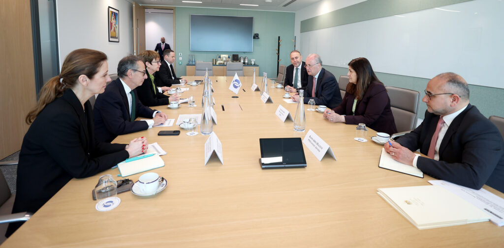 واجتمع رئيس الوزراء مع رئيسة البنك الأوروبي لإعادة الإعمار والتنمية أوديل رينو باسو لتعزيز مجالات التعاون ومواءمة جهوده مع جهود الحكومة في العديد من القطاعات سواء في الاستثمار بالطاقة المتجددة، وإعادة الإعمار والإنعاش في قطاع غزة فور وقف العدوان، معربا عن تقديره لبرامج البنك الأوروبي لدعم المشاريع المتوسطة والصغيرة ومتناهية الصغر لمساندة الاقتصادي الفلسطيني في التعافي والنمو المستدام وخلق فرص عمل.