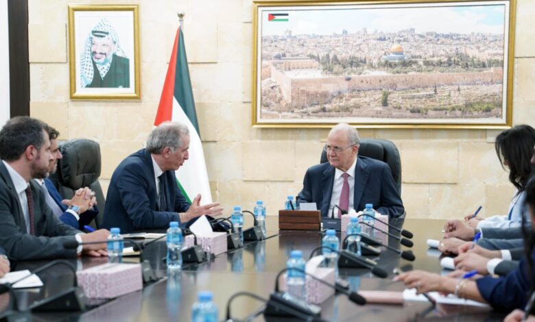 مصطفى يبحث مع الممثل الأوروبي الخاص لعملية السلام آخر المستجدات وجهود وقف إطلاق النار
