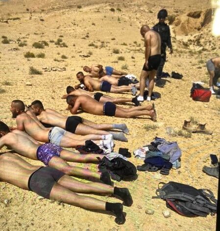تداولت ناشطون عبر منصات التواصل الاجتماعي، صورة تُظهر مجموعة من العمال الفلسطينيين وهم مقيدو الأيدي ومعصوبو الأعين، وقد أجبرهم جنود الاحتلال على خلع ملابسهم، في منطقة واد سيّال، الواقعة خلف جدار الفصل الذي يفصل بين منطقة عراد ومحيط مسافر يطا جنوب الخليل.