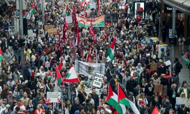 تظاهرات حاشدة في 27 مدينة أسترالية تضامنا مع الشعب الفلسطيني