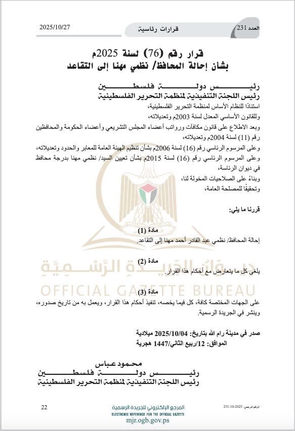 ونشر القرار الرئاسي في الجريدة الرسمية.