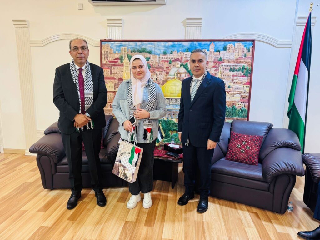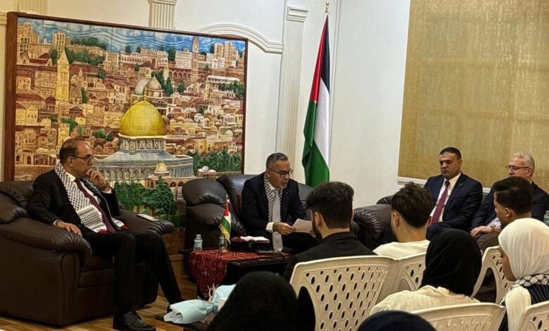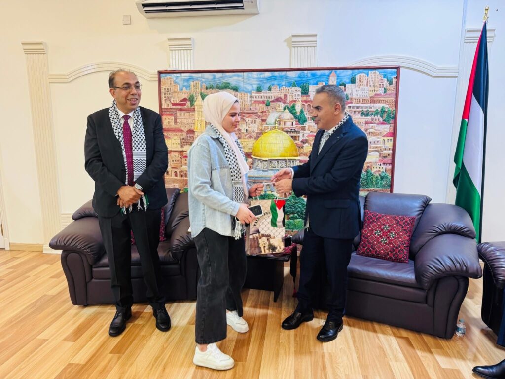 خلال اللقاء عبّر السفير ابو الرب عن فخره واعتزازه بأبناء فلسطين المتفوقين، مؤكدًا أن العلم هو سلاح البناء والصمود، ورمز القوة الحقيقية لبناء دولة فلسطين المستقلة بهمم الشباب وجيل المستقبل وتحقيق تطلعات الشعب الفلسطيني في الحرية والكرامة والديمومة في انجازات وتفوق كما عهدنا ابناء شعبنا الفلسطيني اينما كانوا وحلو.