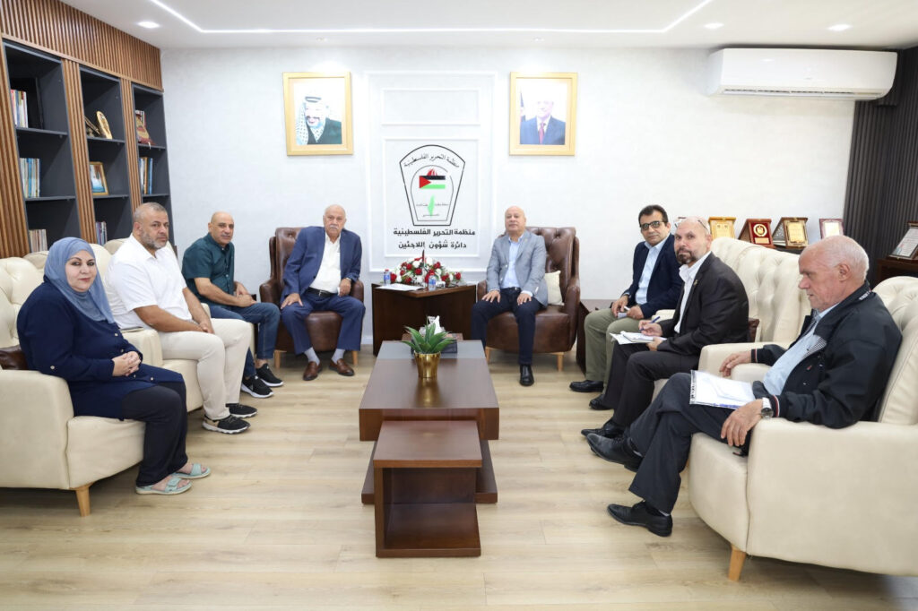 استقبل عضو اللجنة التنفيذية لمنظمة التحرير الفلسطينية، رئيس دائرة شؤون اللاجئين د. أحمد أبو هولي، اليوم الأربعاء، وفدًا من اللجنة الشعبية لخدمات مخيم دير عمار للاجئين (قرب رام الله)، بحضور وكيل الدائرة أنور حمام، ومدير عام المخيمات محمد عليان.