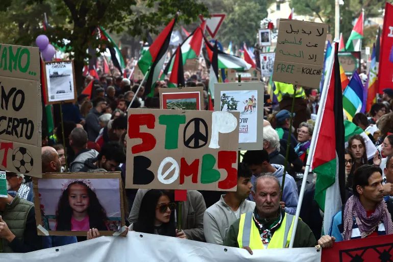 وتجمع آلاف المحتجين في ساحة “ماجيوري” وسط المدينة، قبل المباراة للتعبير عن رفضهم لمشاركة الفرق الإسرائيلية في المنافسات الرياضية الدولية.