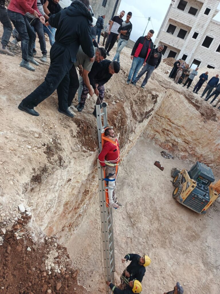 الدفاع المدني يخلي عاملا مصابا من داخل حفرة في يطا جنوب الخليل