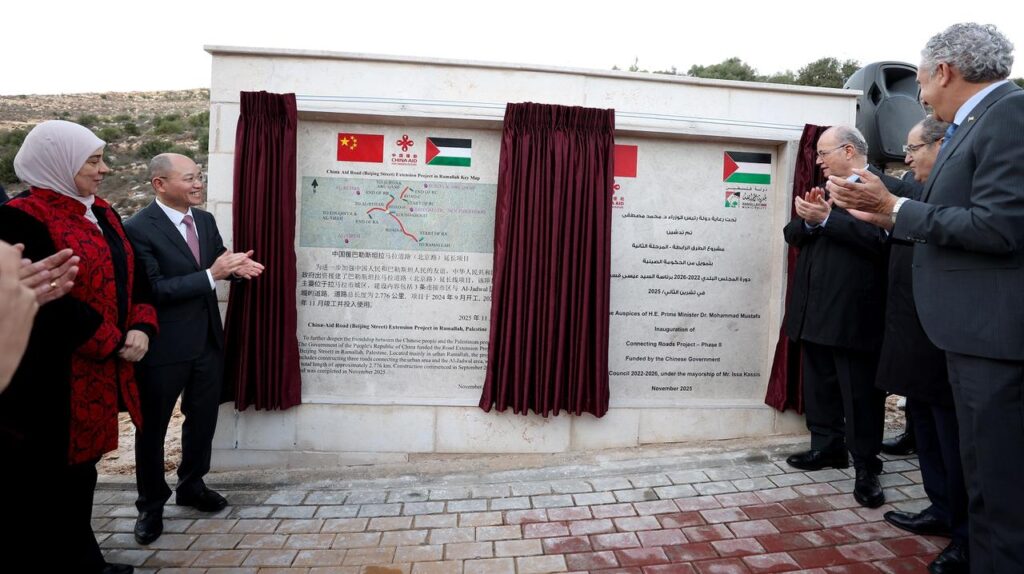 وأعرب السفير الصيني عن يقينه التام بأن “شارع بكين”، الممتد على مسافة أكثر من 11 كيلو مترا، سيصبح شارعا حيويا يخدم أبناء الشعب الفلسطيني، ويسهم في تسهيل حركة التنقل والتخفيف من الازدحام المروري داخل رام الله وخارجها.