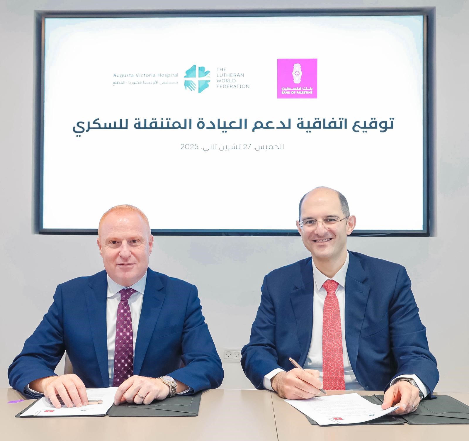 بهدف توفير فحوصات مجانية وتعزيز الوعي الصحي .. بنك فلسطين يوقع اتفاقية مع مستشفى الأوغستا فكتوريا (المُطلع) لدعم العيادة المتنقلة للسكري