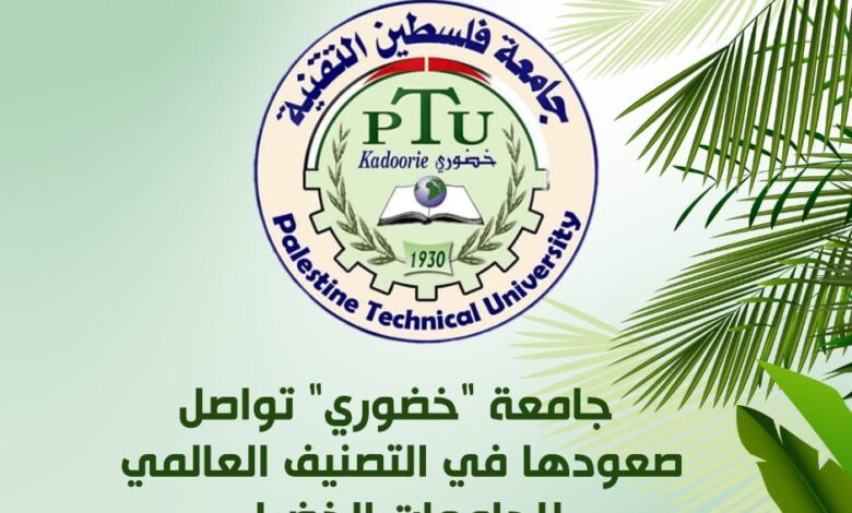 حققت جامعة فلسطين التقنية خضوري انجازاً نوعياً تمثل في تقدمها الكبير في تصنيف (الجامعات الخضراء) العالمي للاستدامة لعام 2025 (UI GreenMetric World University Rankings)، بعد صعودها الى المرتبة الثانية فلسطينيا والمرتبة 312 عالمياً من بين آلاف الجامعات المشاركة، مقارنة بمرتبتها 440 عالمياً في العام الماضي، الأمر الذي يعكس التطور المتواصل في بنية الجامعة البيئية وتطبيقاتها في مجال الاستدامة وجودة الحياة الجامعية.