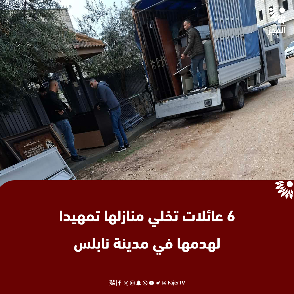 6 عائلات تخلي منازلها تمهيدا لهدمها في مدينة نابلس