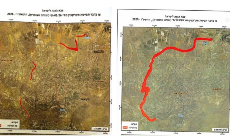 الاحتلال يستولي على 47 دونما من أراضي جنين ونابلس