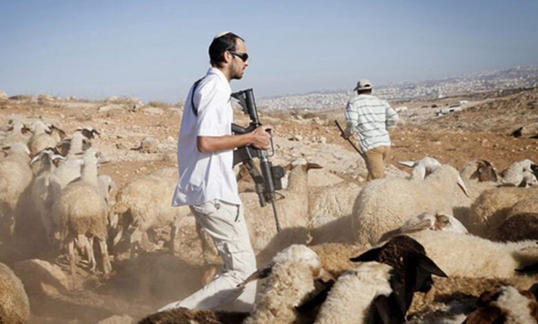مستوطنون يرعون أغنامهم في المغير شرق رام الله