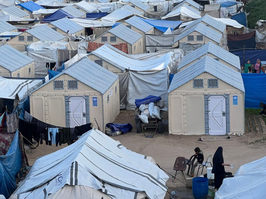 وفي قطاع الإيواء، استكملت الوزارة أعمال تركيب الخيام في مخيم الزيتون، حيث بلغ إجمالي عدد الخيام التي تم تركيبها 117 خيمة، ومن المقرر أن يباشر المقاول الجديد أعماله خلال الأسبوع القادم لاستكمال التدخلات المقررة في الموقع. كما تم، من خلال المؤسسات والمنظمات الشريكة، تشغيل بئر المياه في المخيم، ويجري العمل حاليًا على إنشاء محطتي تحلية مياه وتنفيذ شبكة صرف صحي، بما يضمن توفير الحد الأدنى من الخدمات الأساسية للأسر المقيمة. كذلك استُكملت أعمال تسوية أرض “التوم” بمساحة 11 دونمًا بدعم من برنامج الأمم المتحدة الإنمائي، تمهيدًا لإنشاء مركز إيواء من وحدات RHU وفق خطة الوزارة المعتمدة. وفي محافظة خانيونس، تم الانتهاء من الأعمال الخاصة بمشروع صيانة الوحدات السكنية في الحي الإماراتي والياباني، حيث جرى إنجاز 232 وحدة سكنية، الأمر الذي يسهم في إعادة تمكين الأسر المتضررة من العودة إلى مساكنها وتحسين ظروفها المعيشية.