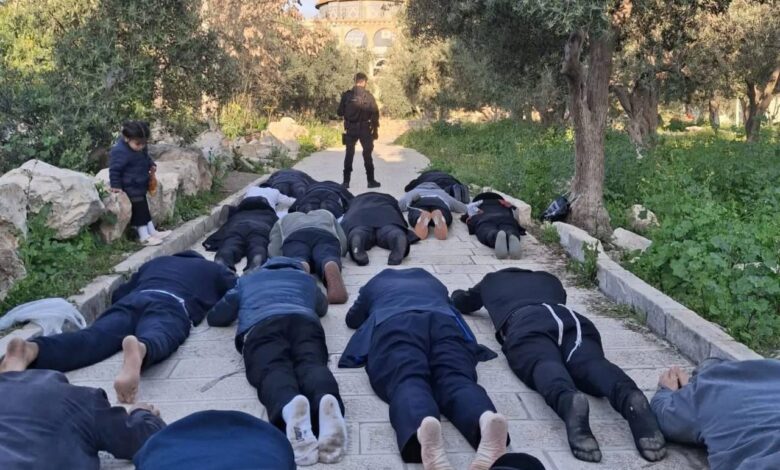 مستوطنون يؤدون “السجود الملحمي” خلال اقتحام باحات الأقصى