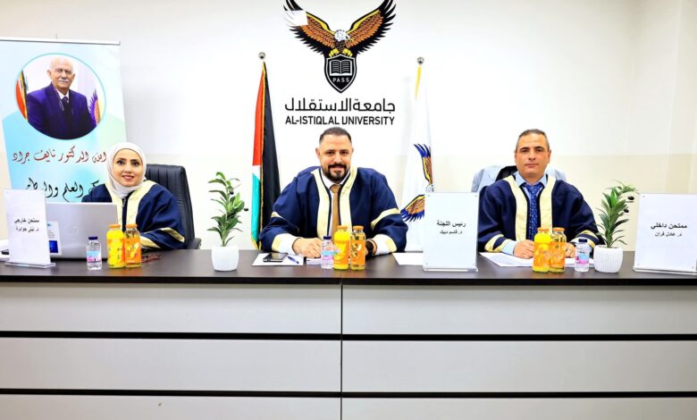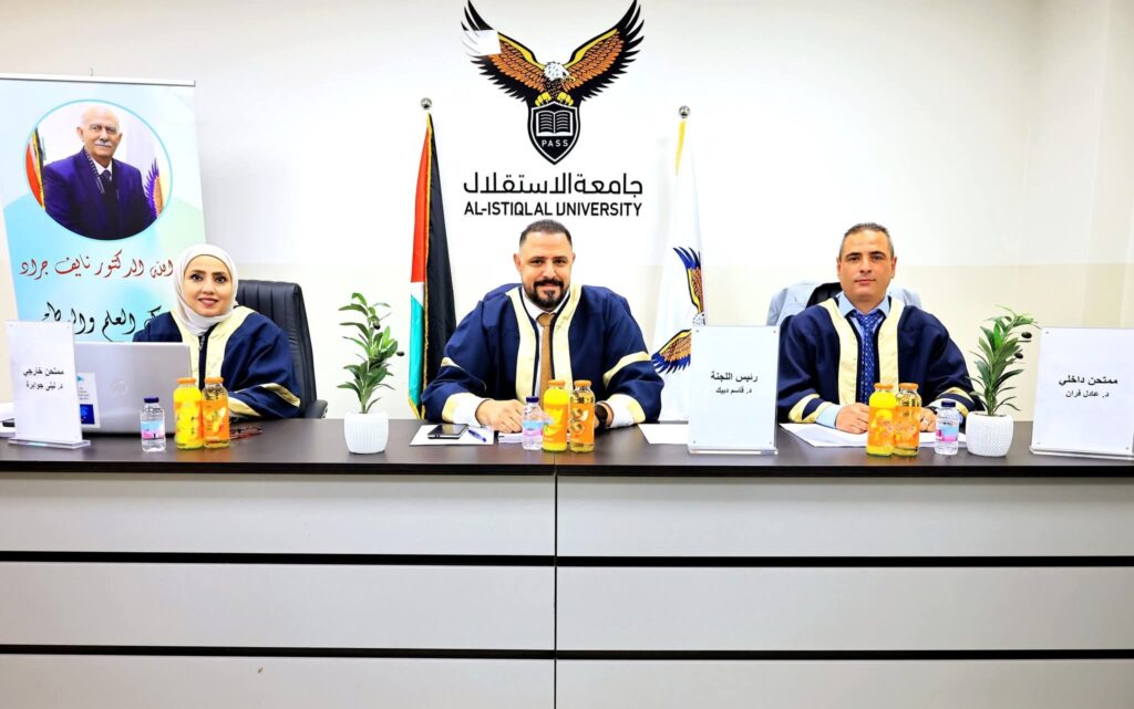 في سياق التطور لمنظومة البحث العلمي في جامعة الاستقلال، شهدت كلية الدراسات العليا والبحث العلمي المناقشة الأولى لرسالة ماجستير ضمن برنامج “التدريب الرياضي “، لتدشن بذلك مرحلة جديدة من العطاء الأكاديمي والرياضي في فلسطين.