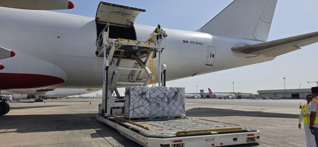 توجّهت طائرة إغاثة يوم الجمعة من مطار الشارقة الدولي تحمل أكثر من 100 طن من المواد الغذائية والمساعدات الأساسية إلى قطاع غزة، وذلك ضمن حملة الإغاثة التابعة لمبادرة “جسر حميد الجوي”.