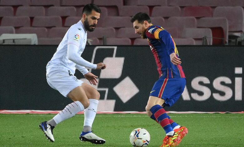 وسجل ميسي هدفين وقدم أداء رائعا معتادا ليعادل رقم تشافي هرنانديز القياسي خلال الانتصار 4-1 على هويسكا متذيل ترتيب دوري الدرجة الأولى الإسباني لكرة القدم.