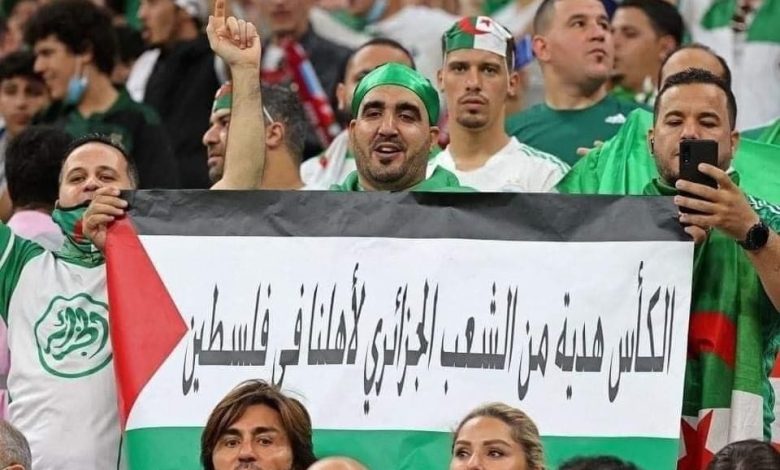 ولم يغب العلم الفلسطيني عن منصة التتويج، حيث عمد عدد من لاعبي منتخب الجزائر على رفعه إلى جانب علم الجزائر.
