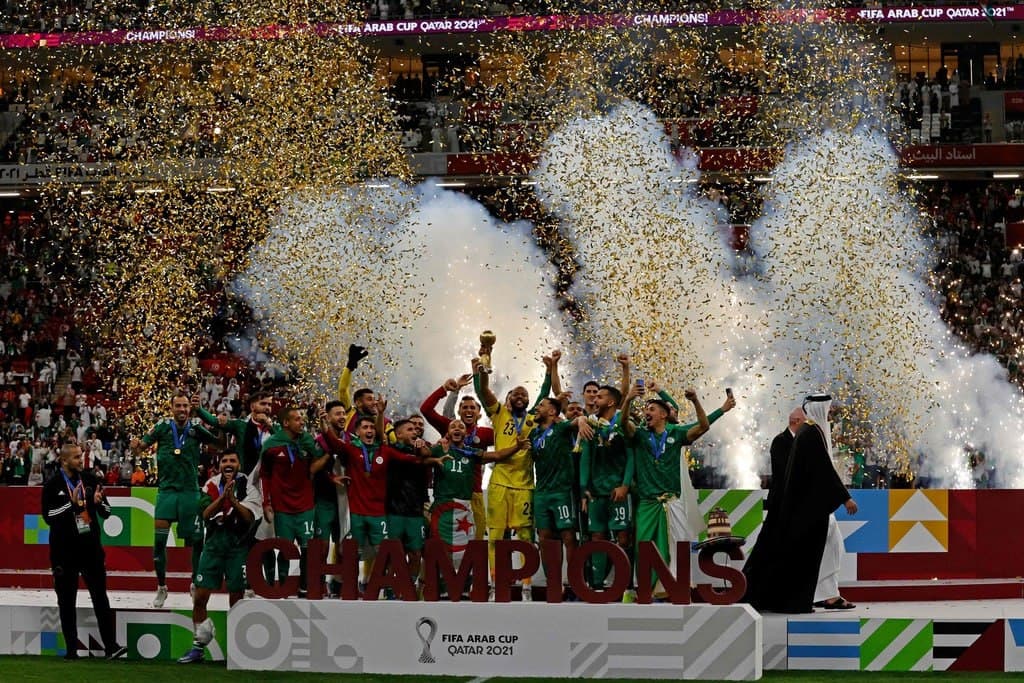 توج منتخب الجزائر مساء اليوم السبت، بلقب بطولة كأس العرب في نسختها العاشرة، بفوزه باللقاء الختامي على منتخب تونس بهدفين نظيفين، في المباراة التي جرت على إستاد البيت في العاصمة القطرية الدوحة.