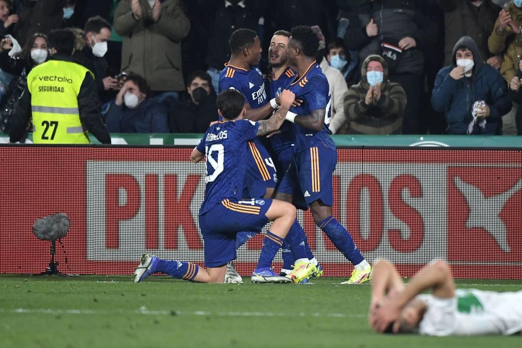 اقتنص ريال مدريد بطاقة العبور إلى دور الثمانية بكأس ملك إسبانيا لكرة القدم، بعد فوزه الصعب على مضيفه إلتشي 2 – 1، يوم الخميس، ضمن منافسات دور الستة عشر.
