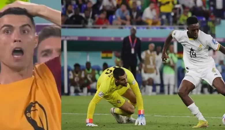 من التفاصيل أن رونالدو “غطى فمه بيده فجأة ثم رفعها إلى هامة رأسه، وشهق جزعا وفزعا” حين رأى لاعبا غانيا يباغت حارس المرمى البرتغالي من الخلف ويسطو منه على الكرة، ثم يدفعها إلى المرمى في الثواني الأخيرة من المباراة، في لقطة رآها المتفرجون من المدرجات وعبر الشاشات التلفزيونية، وفيها نجد أن حارس المرمى البرتغالي Diogo Costa لا يلحظ بقاء اللاعب الغاني Iñaki Williams خلفه، وبنيته السطو على الكرة حين يرفعها كوستا من يديه قبل تسديدها.