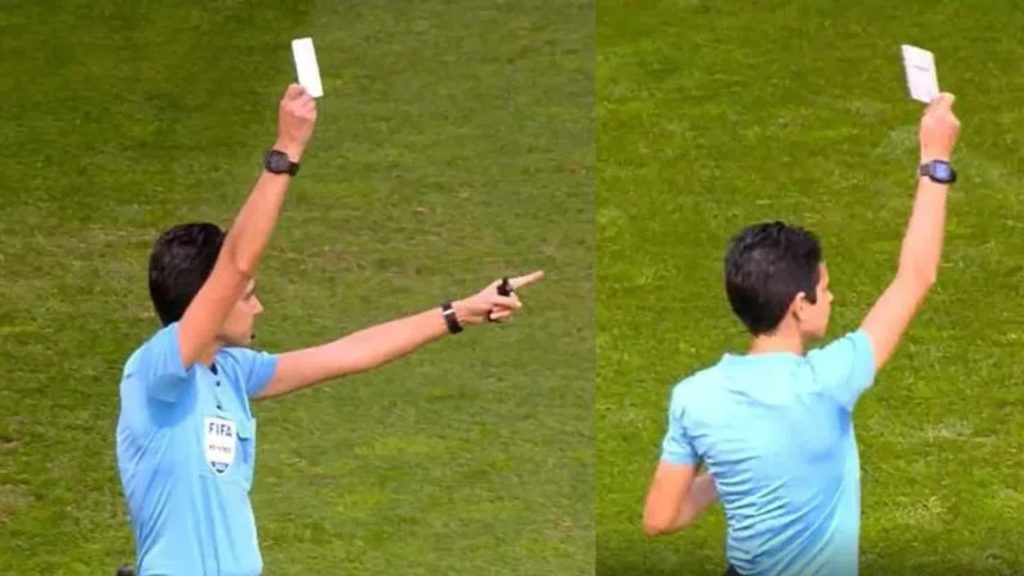 اعتاد مشجعو كرة القدم منذ مونديال 1970، على مشاهد الحكام وهم يشهرون البطاقات الصفراء والحمراء لمعاقبة اللاعبين، ولكن حكم برتغالي فاجأ الجميع بإشهار بطاقة بيضاء.