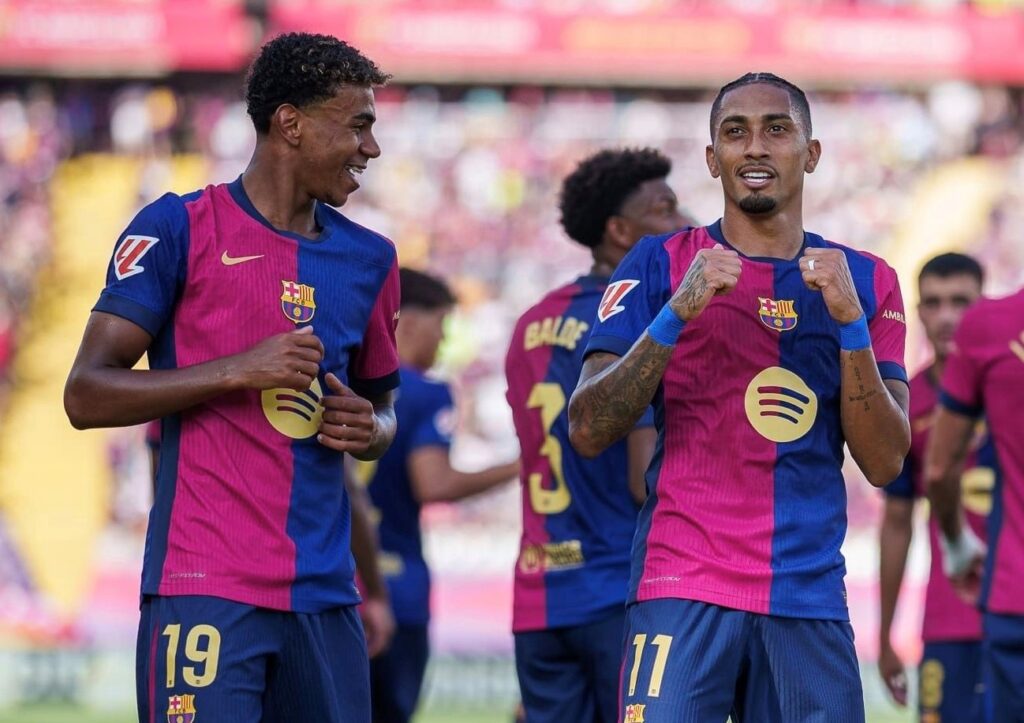 سباعية البارسا حملت توقيع رافينيا “هاتريك” في الدقائق 20 و64 و72، ليفاندوفسكي (24)، كوندي (45+2)، أولمو (82) وفيران توريس (85).