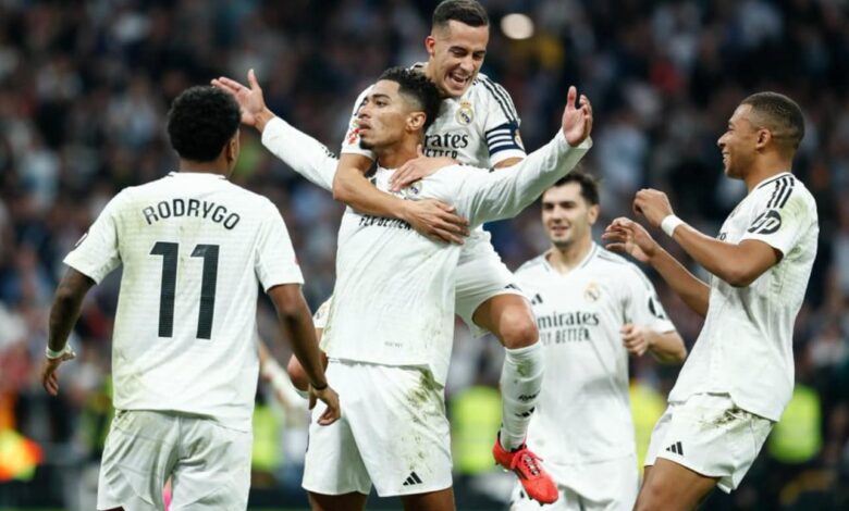 سجل هدفي ريال مدريد، جود بيلينجهام وكيليان مبابي في الدقيقتين 30 و38.