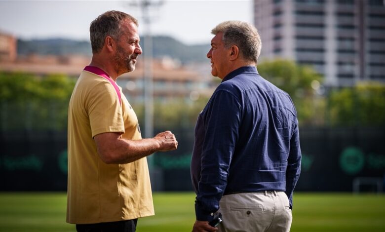 اجتمع رئيس برشلونة، خوان لابورتا، اليوم الاثنين، مع مدرب الفريق، الألماني هانز فليك، لإبلاغه بالخيارات التي لا يزال يعمل عليها، لقيد اللاعبين داني أولمو وباو فيكتور، قبل الأول من يناير/كانون ثان 2025.