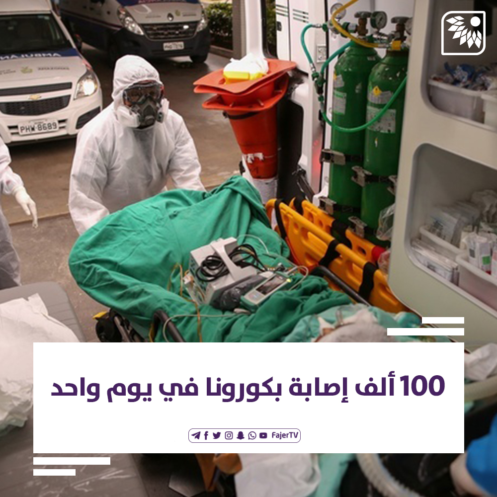تلفزيون الفجر | أعلنت وزارة الصحة البرازيلية يوم الخميس تسجيل 100158 إصابة بفيروس كورونا خلال 24 ساعة، وذلك في رقم قياسي للإصابات الجديدة بالفيروس.