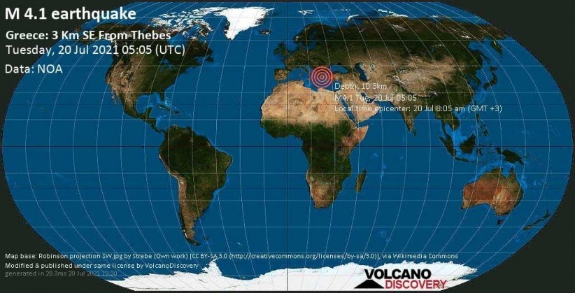 وقال المعهد الجيودينامي التابع للمرصد الوطني لأثينا، وفقا لصحيفة كاثمريني اليونانية، إن الزلزال وقع في الساعة الثامنة وخمس دقائق صباحا بالتوقيت المحلي، على بعد كيلومترين شمال شرق ثيفا، وكان مركزه على عمق 10 كيلومترات.