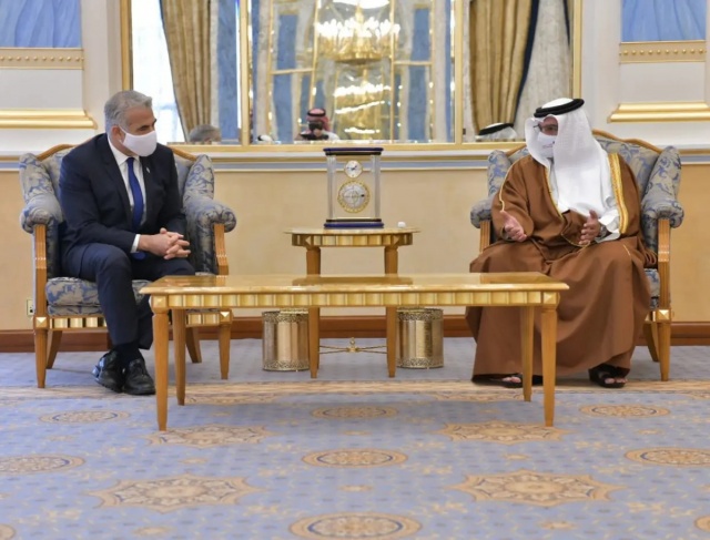 واشار لابيد إلى أنه تحدث (الخميس) مع ولي العهد ورئيس وزراء البحرين الأمير سلمان بن حمد آل خليفة”، وبحث معه توثيق العلاقات بين البلدين.