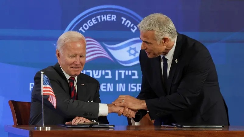 تلفزيون الفجر | كشف السفير الأمريكي لدى إسرائيل توم نايدس اليوم تفاصيل من المكالمة الهاتفية بين رئيس الحكومة الإسرائيلية يائير لابيد مع الرئيس الأمريكي جو بايدن بخصوص الاتفاق النووي الايراني. وبحسب نايدس، بايدن كرر خلال المكالمة البيان بأن ايران لن تحصل على سلاح نووي وذلك كجزء من المصلحة الأمريكية. وقال بايدن :”ولا مرة سنقيد أيدي إسرائيل، نحن ندرك الخطر من جانب إيران”.