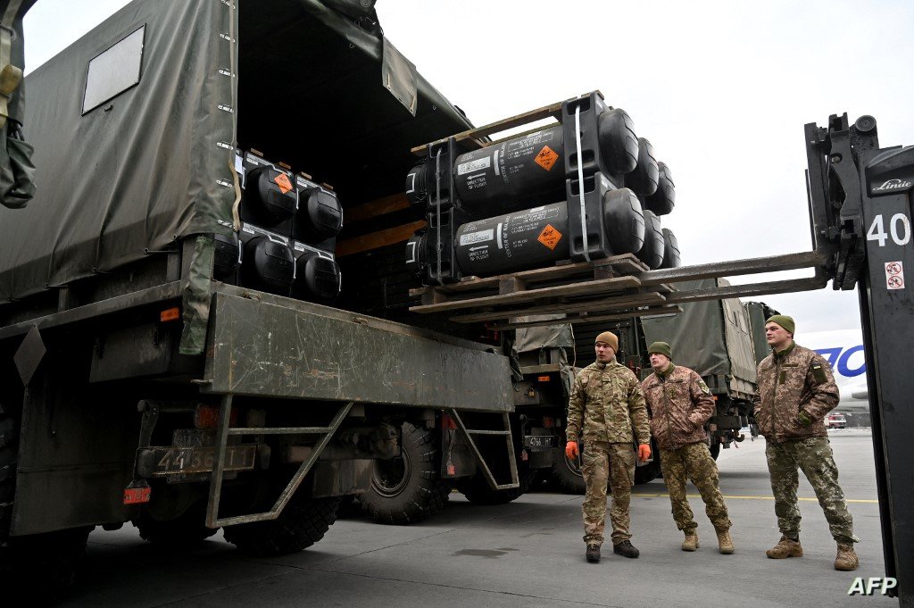 (FILES) In this file photo taken on February 11, 2022, Ukrainian servicemen load a truck with the FGM-148 Javelin, an American man-portable anti-tank missile provided by US to Ukraine as part of continued military support, upon its delivery to the Boryspil airport in Kyiv, Ukraine. - US Secretary of State Antony Blinken announced Tuesday, April 5, 2022, that another $100 million in American made anti-armor systems would be sent to Ukraine following reports of atrocities committed there by invading Russian forces. (Photo by Sergei SUPINSKY / AFP)