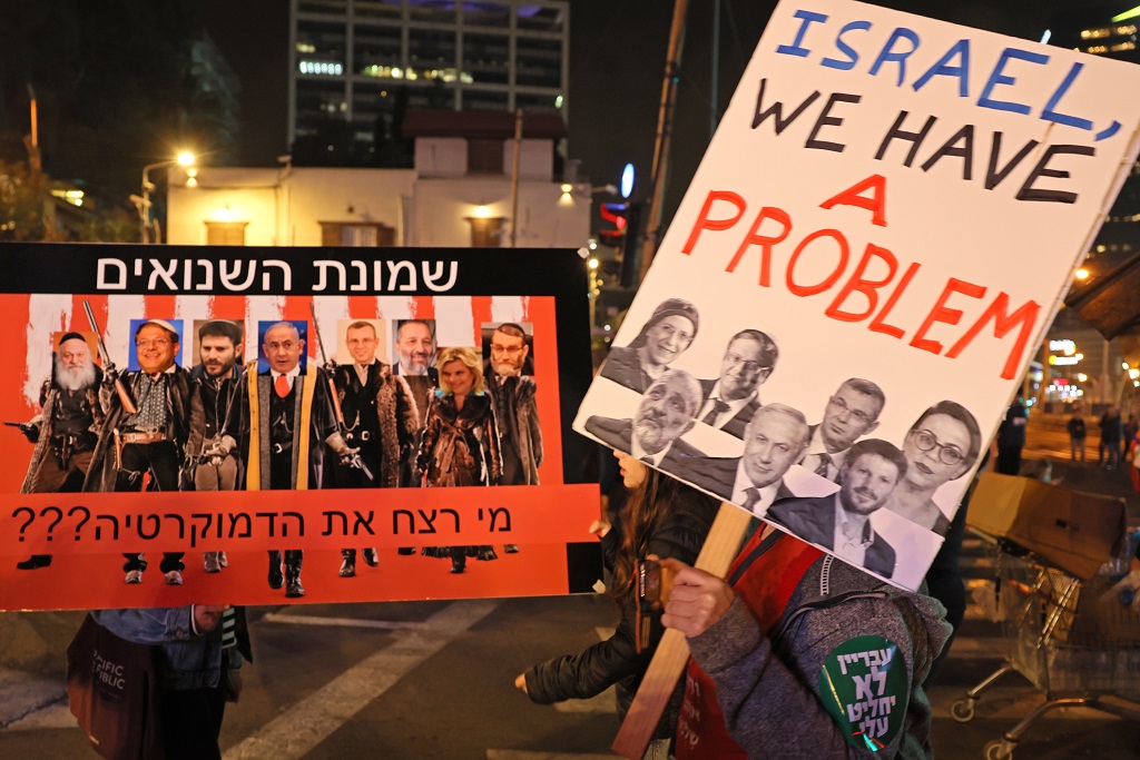 تجددت، مساء اليوم السبت، التظاهرات الحاشدة في تل أبيب وحيفا وهرتسيليا وبئر السبع والقدس ضد الحكومة الإسرائيلية الجديدة برئاسة بنيامين نتنياهو، للأسبوع الرابع على التوالي.