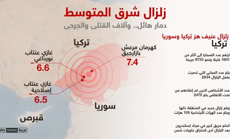 وقالت جهات معنية في تركيا وسوريا إن إرقام الضحايا والمصابين مرشحة للارتفاع على وقع استمرار عمليات الإنقاذ والبحث عن ناجين.