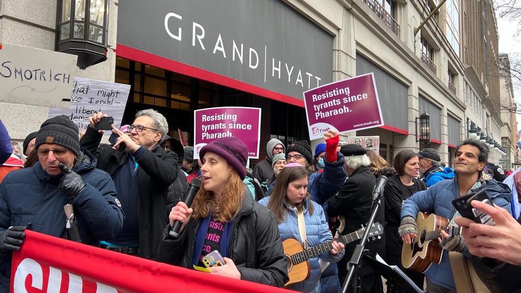 تظاهر مئات المتظاهرين من مختلف شرائح الجالية اليهودية الأميركية والإسرائيلية ضد وزير المالية الإسرائيلي بتسلئيل سموتريتش اليميني المتطرف الذي طالب قبل أقل من أسبوعين بمحو بلدة حوارة الفلسطينية من الوجود، وذلك أمام “فندق جراند حياة” في العاصمة الأميركية واشنطن، حيث كان يشارك في جفل “سندات إسرائيل” التي تجمع سنويا مئات الملايين من الدولارات لدعم الاحتلال الإسرائيلي.