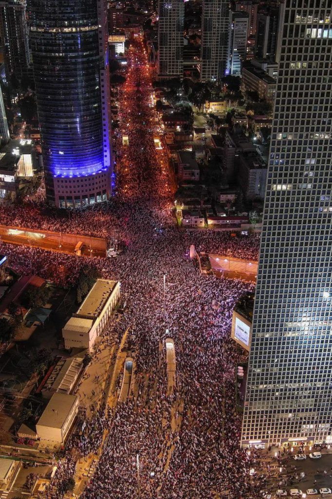 تظاهر مئات الآلاف من الإسرائيليين، مساء اليوم السبت، في تل أبيب وعدة مناطق ومفترقات طرق في إسرائيل، احتجاجا على حكومة بنيامين نتنياهو وخطتها لإضعاف جهاز القضاء وتقويض المحكمة العليا، وذلك للأسبوع الثاني عشر على التوالي.