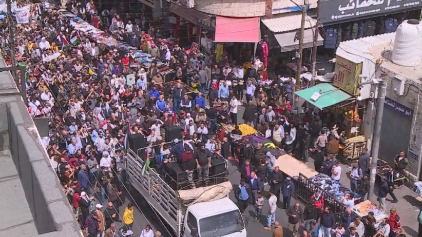 ومنذ نحو ستة أيام، يشارك آلاف الأردنيين بوقفات يومية قرب سفارة إسرائيل بعمّان، للمطالبة بإغلاقها وتضامنا مع غزة.