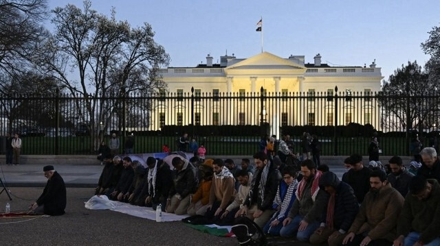 مسلمون يقيمون إفطارا أمام البيت الأبيض تضامنا مع غزة