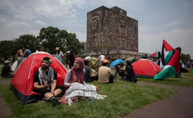 في المكسيك، نصب عشرات الطلاب والناشطين المؤيّدين للفلسطينيين خياما أمام جامعة المكسيك الوطنية المستقلّة، ووضع الطلاب فوق مخيّمهم الاحتجاجي أعلاما فلسطينية وردّدوا شعارات من بينها “عاشت فلسطين حرّة”، و”من النهر إلى البحر، فلسطين ستنتصر”.