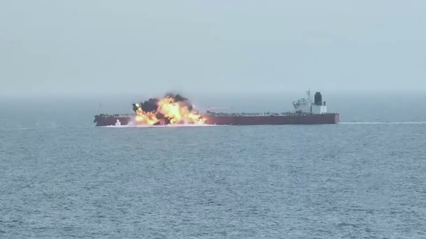 وذكرت هيئة عمليات التجارة البحرية البريطانية أن نفس السفينة شهدت انفجارا صغيرا بالقرب منها قبل أكثر من أربع ساعات، والذي كان على بعد حوالي 170 ميلا بحريا شرق عدن في ذلك الوقت.