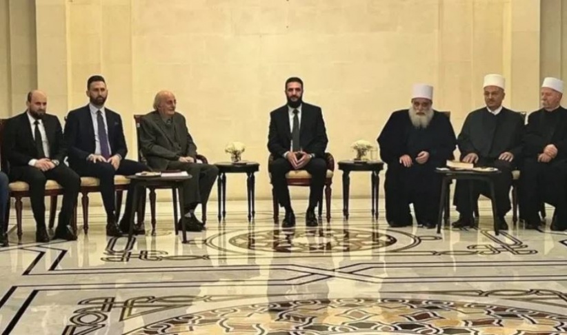 وكان في استقبال جنبلاط والوفد المرافق له رئيس الحكومة الانتقالية السورية، محمد البشير.