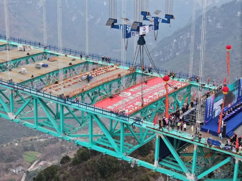 من المتوقع أن تفتتح الصين جسر هواجيانغ كانيون في مقاطعة قويتشو الشهر المقبل، والذي سيصبح أعلى جسر في العالم، بارتفاع 625 مترًا فوق نهر بيفان.