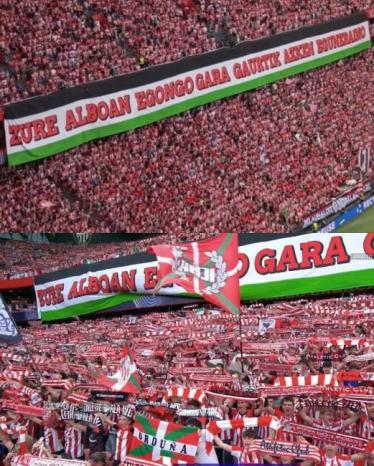 وخلال المباراة التي أقيمت في استاد سان ماميس، رفع جمهور فريق أتلتيك بلباو لافتة كُتب عليها: “سنقف إلى جانبكم حتى آخر يوم”.