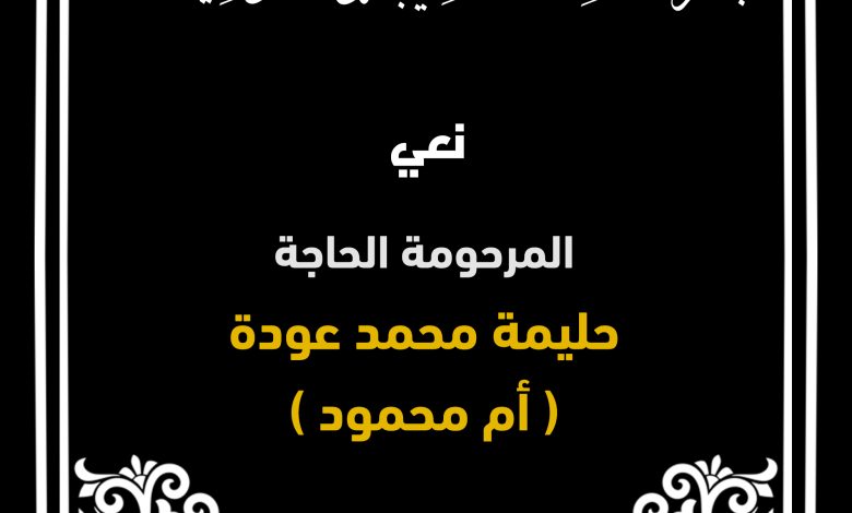 وفاة المرحومة بإذن الله تعالى الحاجة