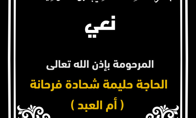 ينعى آل فرحانة في الوطن والخارج عامة فقيدتهم المرحومة بإذن الله تعالى