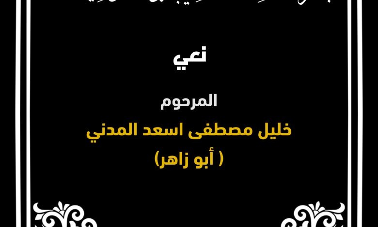 وفاة فقيدهم المرحوم بإذن الله تعالى الحاج